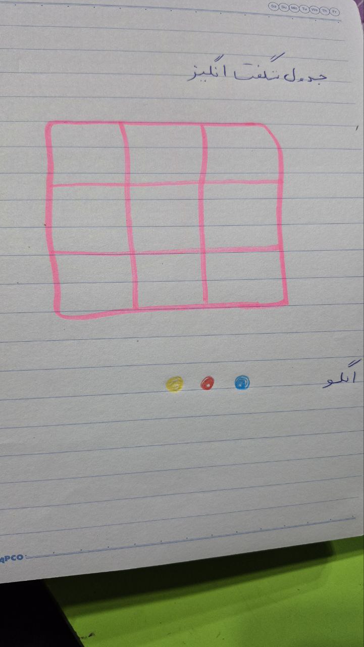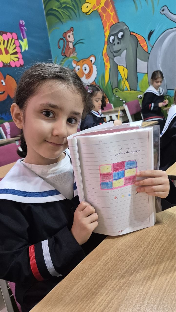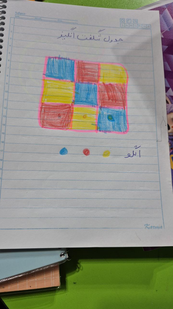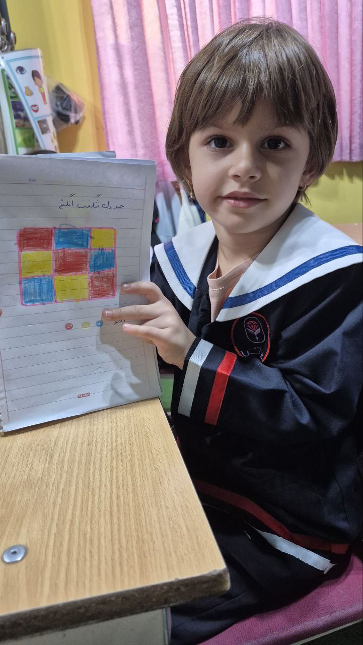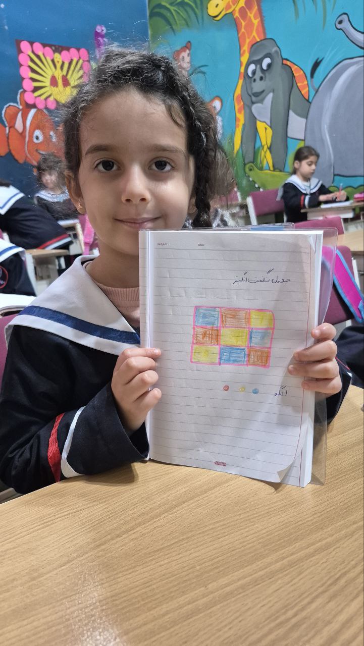 بعد از یاد گرفتن ردیف و ستون و تمرین با مگنت های رنگی روی تابلو برای تثبیت یادگیری این فعالیت رو در دفتر ریاضی انجام دادن جدول شگفت انگیز