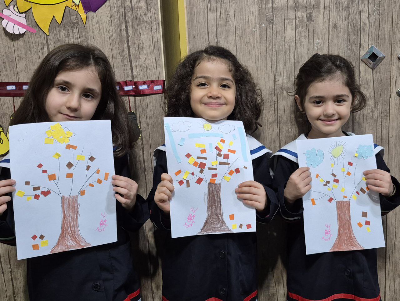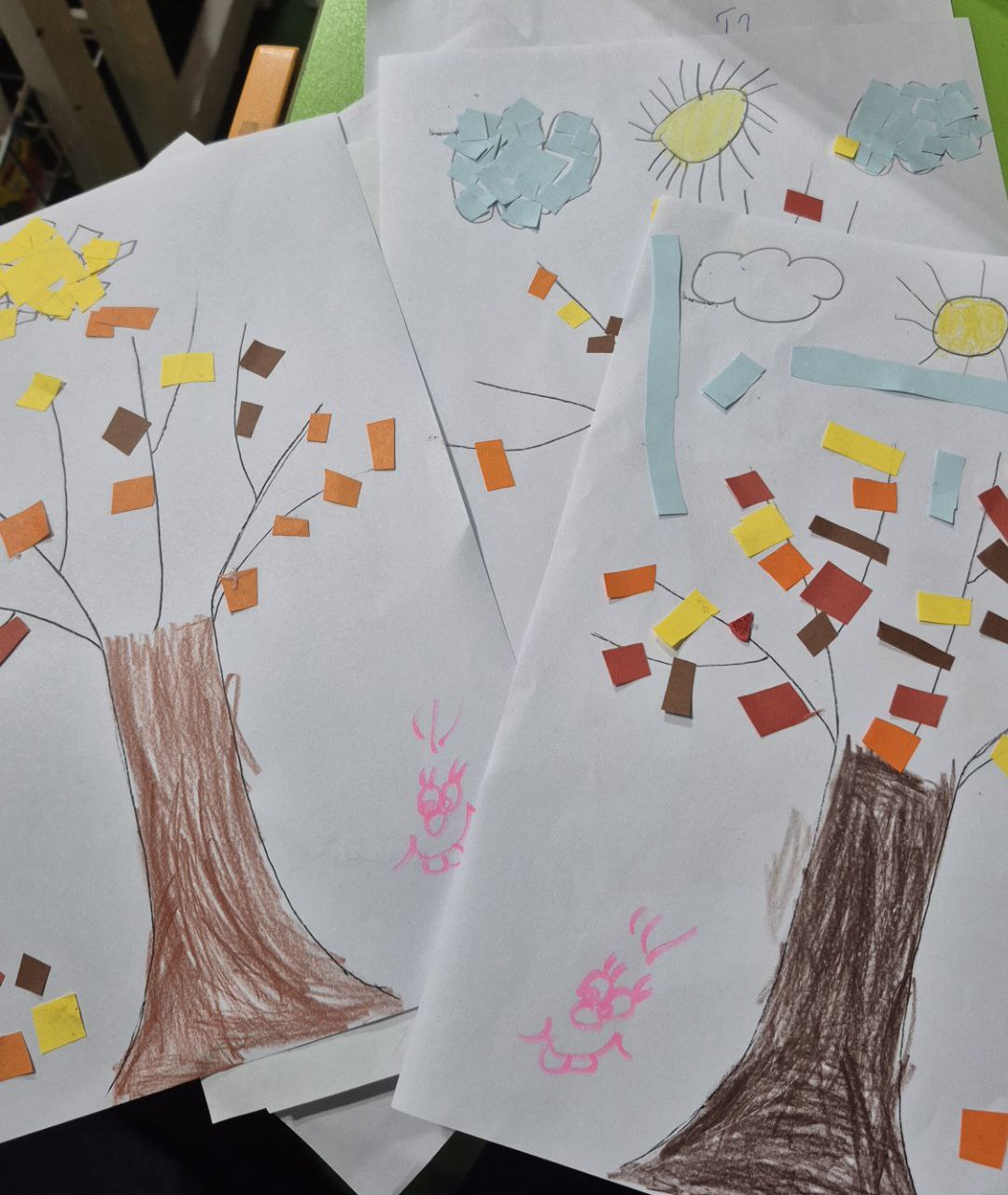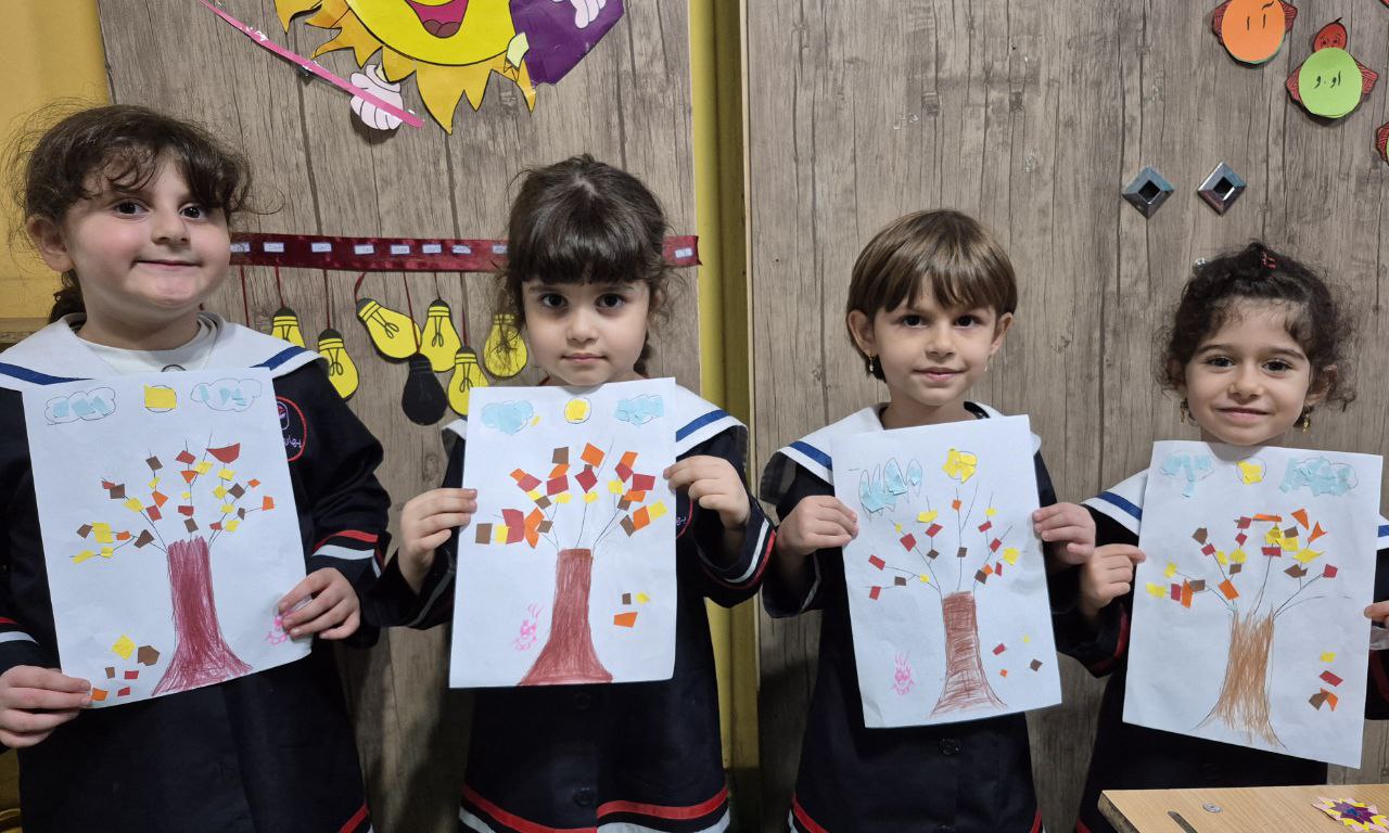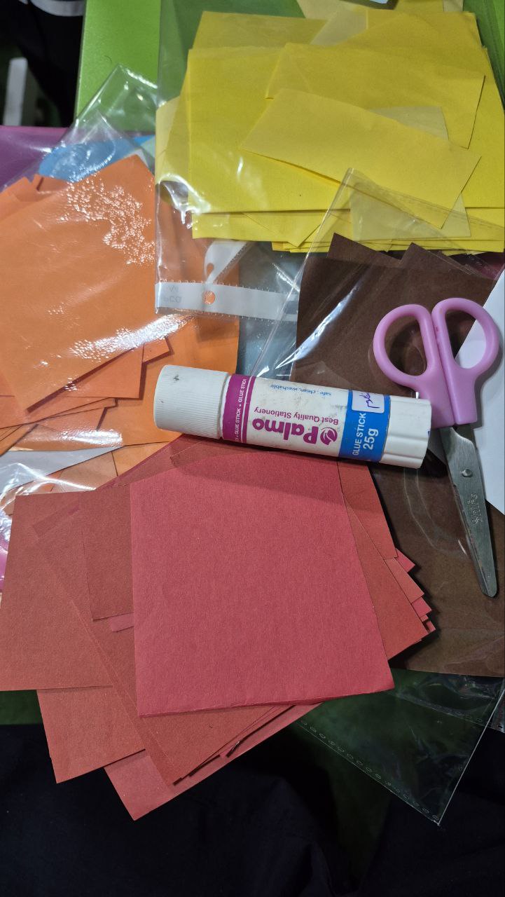 کاغذهای رنگی برای برگهای پاییزی(زرد ،نارنجی،قهوه ای،قرمز) چسب،قیچی