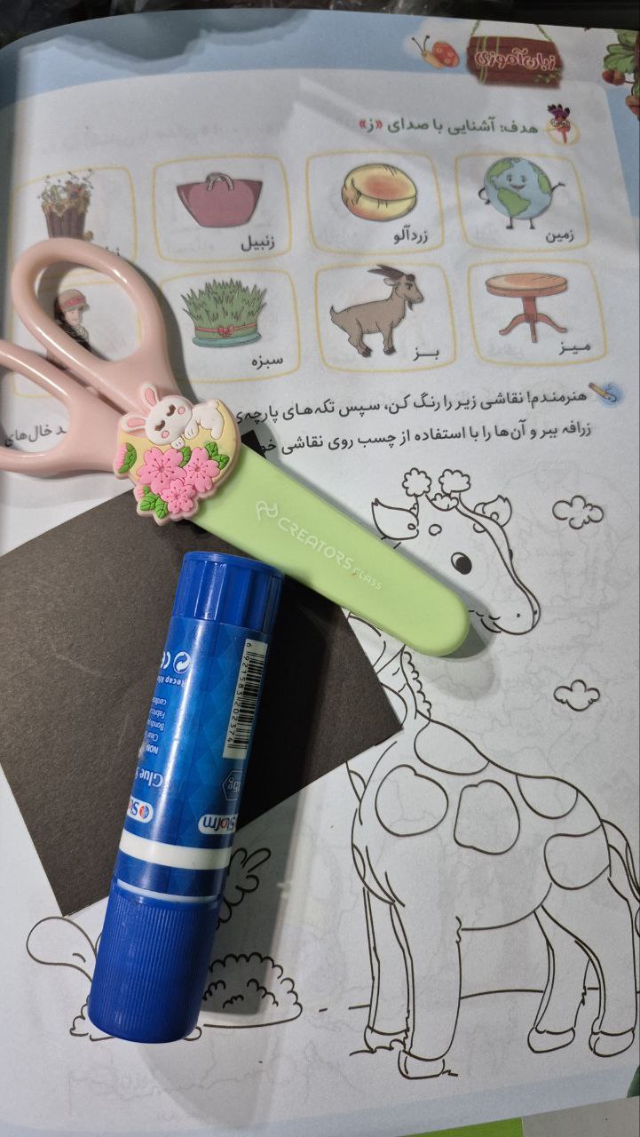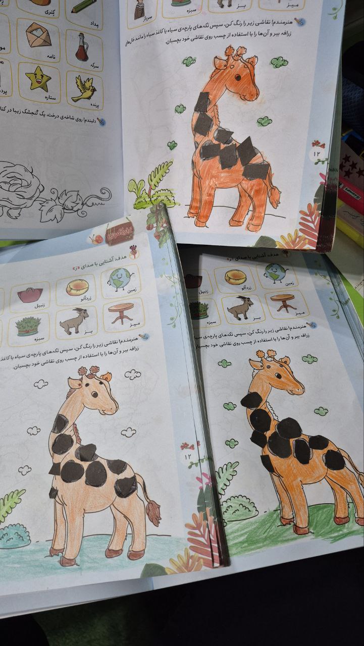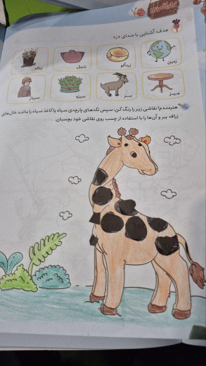 تثبیت یادگیری نشانه (ز)با دست ورزی بریدن خالهای زرافه،تقویت حس زیبایی،دقت